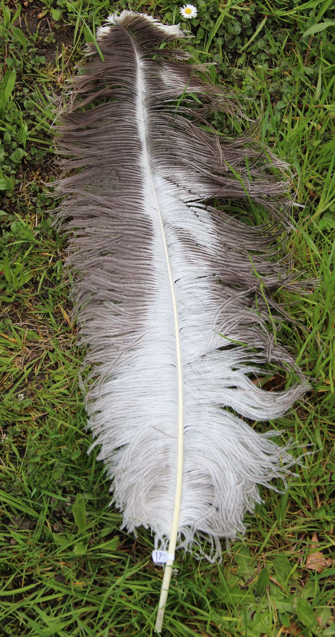 grosse Straussfeder weiss/ schwarz. Masse: ca. 69x25cm